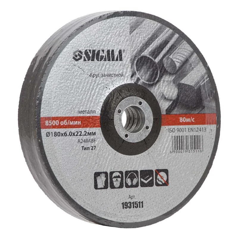 Круг зачисний по металу Ø180×6.0×22.2мм, 8500 об/хв SIGMA (1931511)