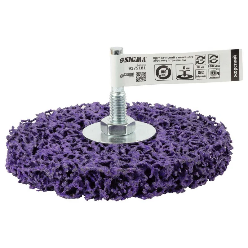 Круг зачисний з нетканого абразиву (корал) Ø100мм з тримачем фіолетовий жорсткий SIGMA (9175181)