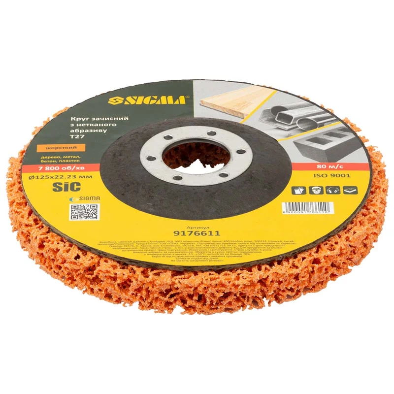 Круг зачистний з нетканого абразиву (корал) Т27 Ø125×22.23мм помаранчевий жорсткий SIGMA (9176611)