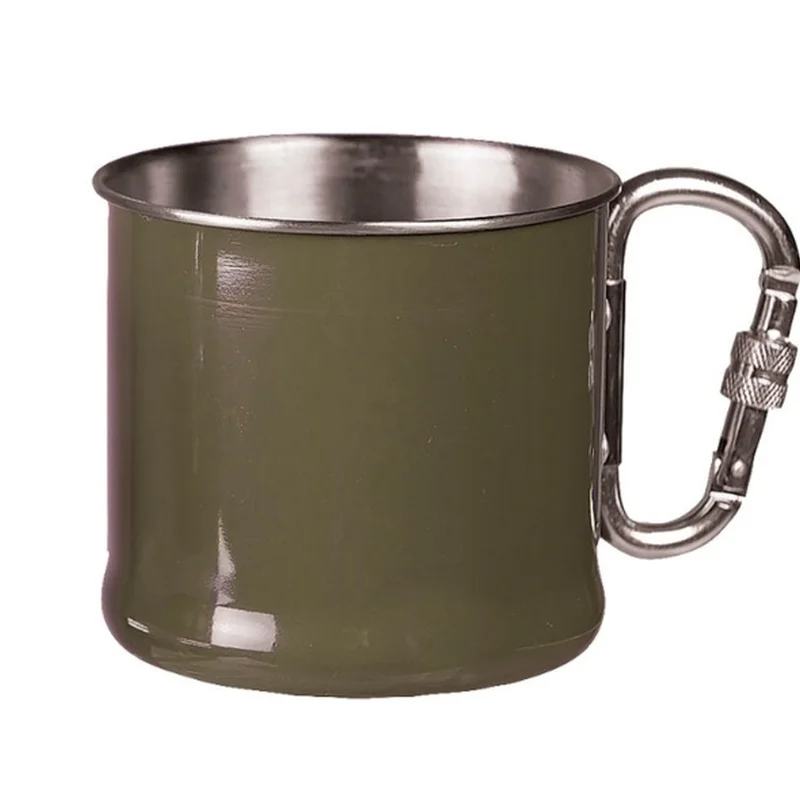 Кружка военная стальная с карабином 500 мл Mil-Tec Германия Oliv