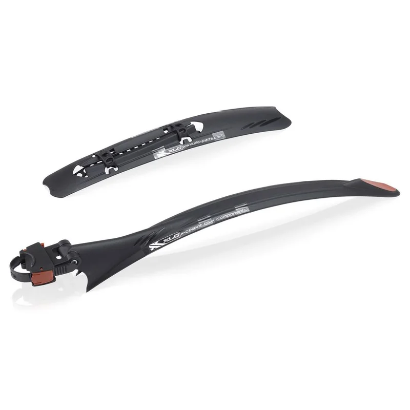 Переднее крыло уже несколько отличается по своей концепции. Во первых, оно более широкое, но это не удивительно, ведь оно крепится на нижнюю трубу рамы с помощью специальных эластичных ремней и соответственно закрывает более широкую площадь. Что еще более примечательно, этот комплект можно использовать в качестве заднего крыла для горного велосипеда, ведь переднее и заднее собирается в одно более широкое заднее крыло, делая набор более универсальным за счёт сегментной конструкции.