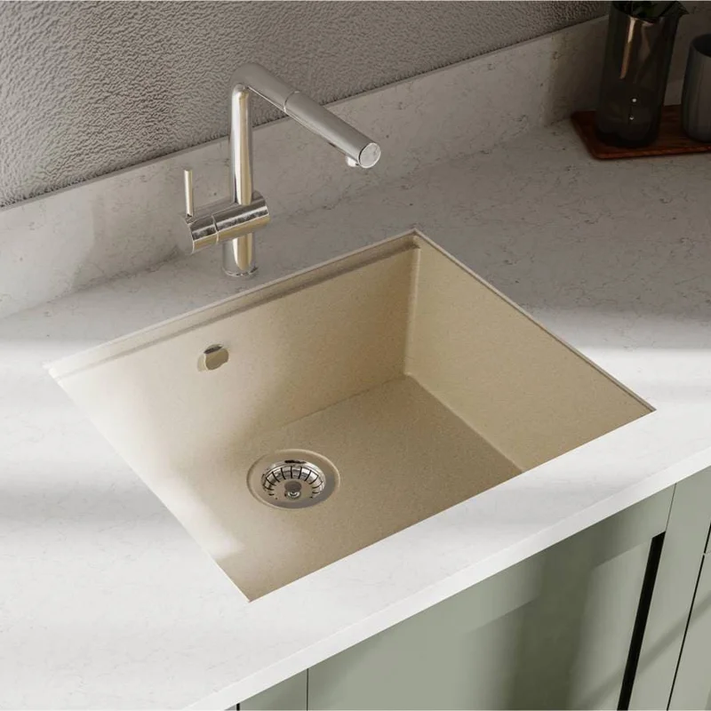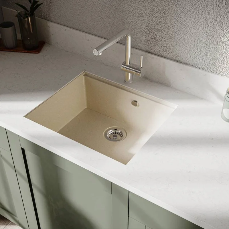 Кухонна мийка LAGOON 540 jasmine має однорідну текстуру та колір. Вона не всочує запахи, відштовхує жир та забруднення, а також не змінює кольору в процесі експлуатації.