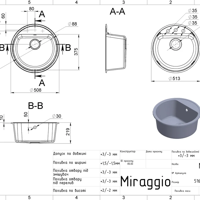 Форма цієї моделі Кругла, а кількість чаш - 1. Тип установки - Врізний.