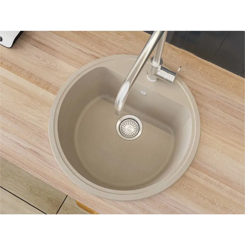 Кухонна мийка MALIBU sand на 80% складається з кварцевого піску та на 20% з поліефірної смоли, що забезпечує міцність цього виробу. Кухонна мийка витримує перепади температур від -65 до +65°C та не підається впливу агресивних побутовик фарбників.