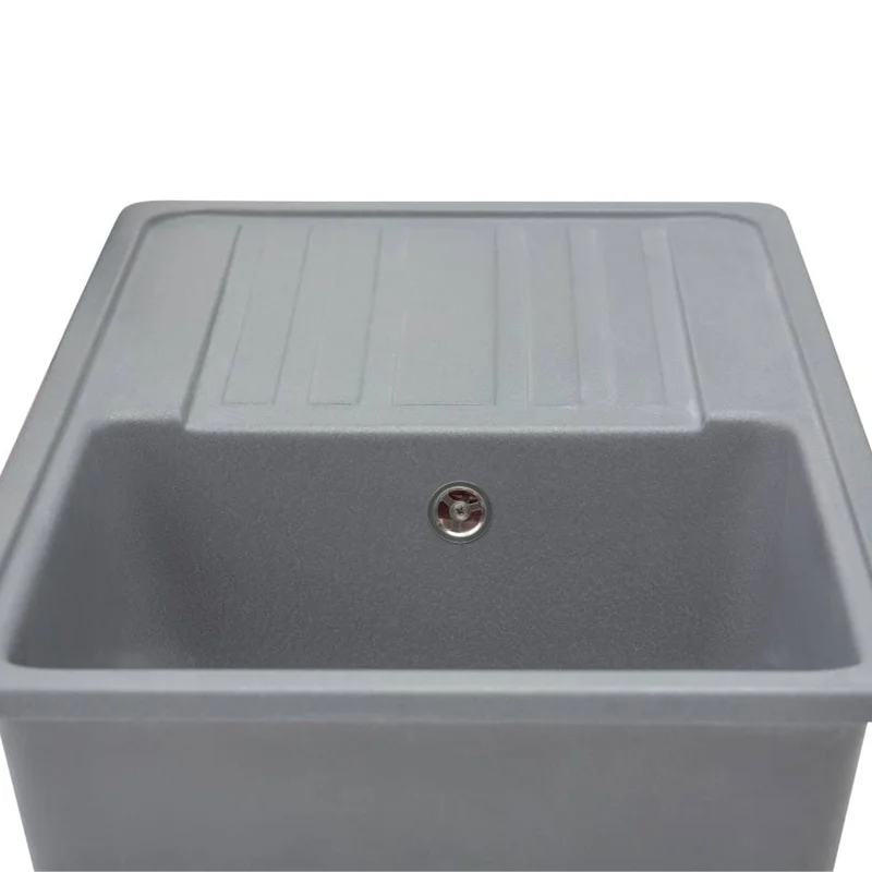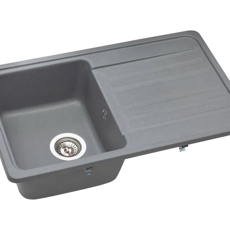 Кухонна мийка VERSAL gray на 80% складається з кварцевого піску та на 20% з поліефірної смоли, що забезпечує міцність цього виробу. Кухонна мийка витримує перепади температур від -65 до +65°C та не підається впливу агресивних побутовик фарбників.