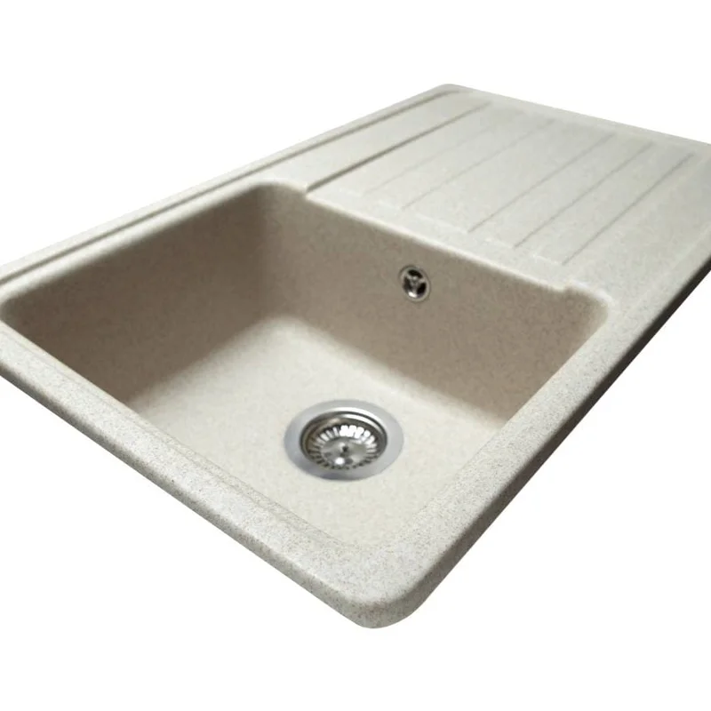 Кухонна мийка VERSAL sand на 80% складається з кварцевого піску та на 20% з поліефірної смоли, що забезпечує міцність цього виробу. Кухонна мийка витримує перепади температур від -65 до +65°C та не підається впливу агресивних побутовик фарбників.
