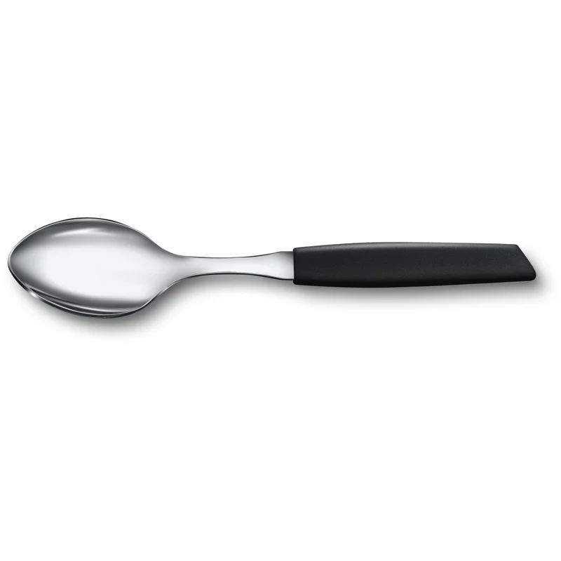 Чайна ложка Victorinox з колекції Swiss Modern у сучасному дизайні з чорною синтетичною ручкою.