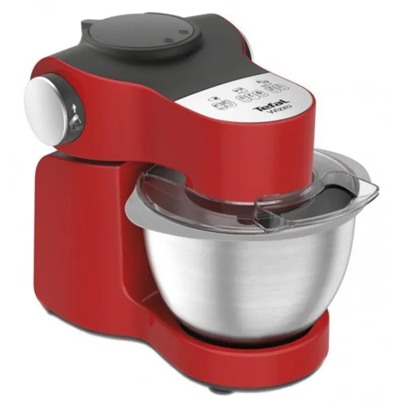 Кухонна машина TEFAL QB317538 WIZZO зробить приготування випічки та будь-яких різноманітних страв простішим, зручнішим і швидшим. Завдяки планетарному руху та запатентованій насадці Flex Whisk, кухонна машина Wizzo професійно змішує, замішує і навіть збиває потрібні для приготування інгредієнти. Будь-які солодкі або солоні страви, які ви плануєте випікати, вона з легкістю допоможе вам приготувати. Проста форма та компактний стильний дизайн доповнять інтер’єр будь-якої кухні. Елегантна чаша для змішування з неіржавкої сталі Чаша на 4 літри з неіржавкої сталі ідеально підходить для приготування великих об’ємів. Ви можете приготувати навіть 40 кексів або 3 піци (діаметром 28 см, на товстому тісті), щоб потішити сім’ю і друзів. Швидкий і потужний. Потужність 1000 Вт і 7 швидкостей забезпечують плавне, рівномірне перемішування. До комплекту входять насадки для шаткування з 3 барабанами, блендер, а також м’ясорубка з насадкою для ковбасок, що робить WIZZO універсальним помічником на кухні та замінює відразу 4 девайси, заощаджуючи і місце, і час приготування. Дивуйте всю сім’ю кулінарними шедеврами завдяки кухонній машині Tefal QB317538 WIZZO.