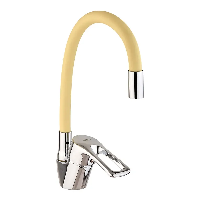Кухонный смеситель с силиконовым изливом Zerix YUB 181 Reflector Ivory (ZX4976)