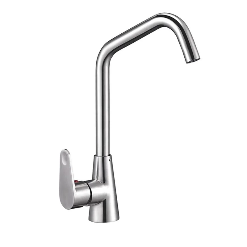 Смеситель для кухни из нержавеющей стали. Технология производства: токарная обработка, материал корпуса: нержавеющая сталь SUS 304, керамический картридж: 35 мм, цвет: серый, тип крепления: гайка, подводка в комплекте: гибкая 1/2 дюйма (длина 400 мм)