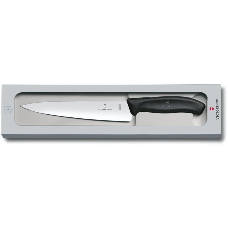 Швейцарський обробний ніж Swiss Classic Carving із лезом 19 см від виробника високоякісної ножової продукції VICTORINOX. Надефективний ніж з гладкою кромкою та чорною рукояттю.