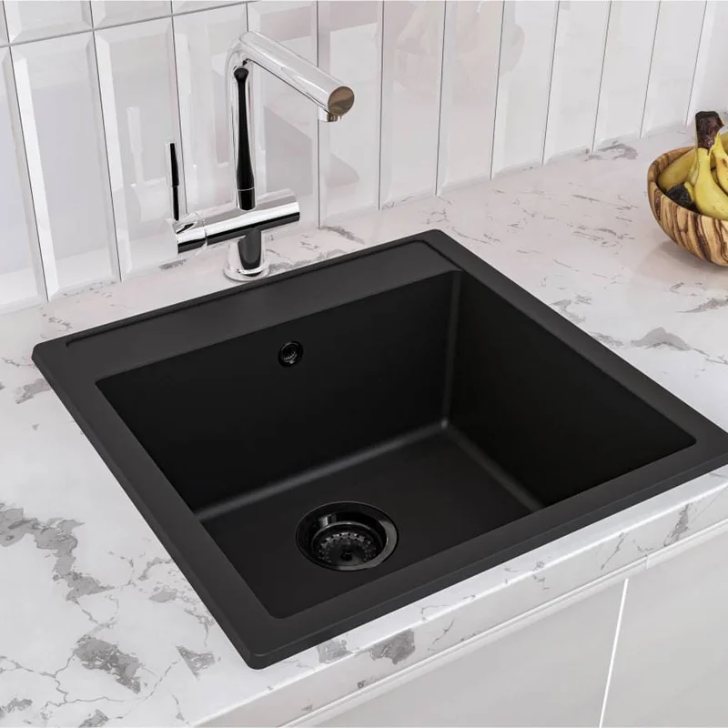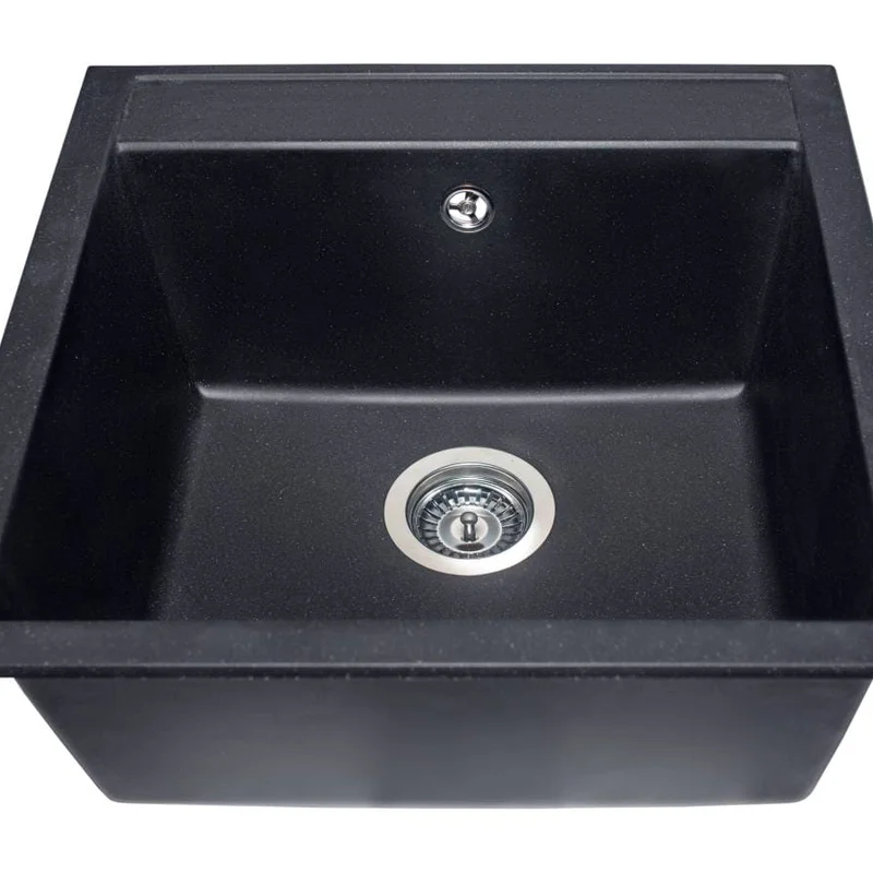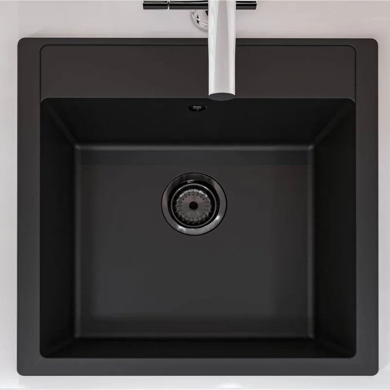 Кухонна мийка BODRUM 510 black має однорідну текстуру та колір. Вона не всочує запахи, відштовхує жир та забруднення, а також не змінює кольору в процесі експлуатації.