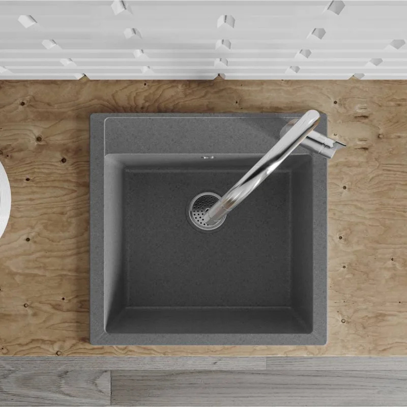 Кухонна мийка BODRUM 510 gray має однорідну текстуру та колір. Вона не всочує запахи, відштовхує жир та забруднення, а також не змінює кольору в процесі експлуатації.