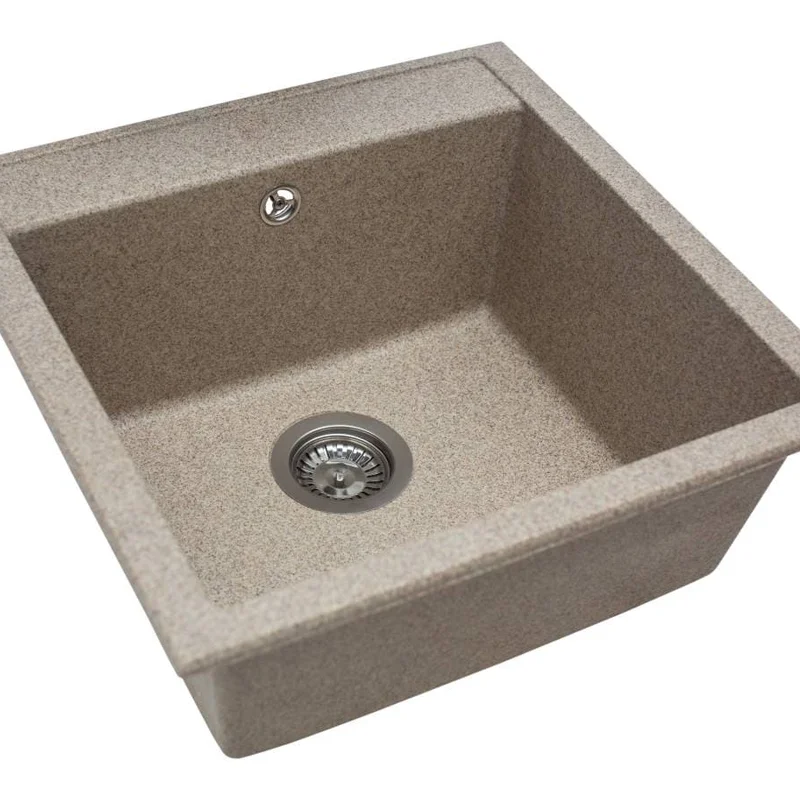 Кухонна мийка BODRUM 510 terra на 80% складається з кварцевого піску та на 20% з поліефірної смоли, що забезпечує міцність цього виробу. Кухонна мийка витримує перепади температур від -65 до +65°C та не підається впливу агресивних побутовик фарбників.