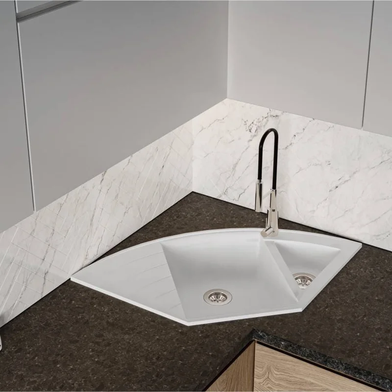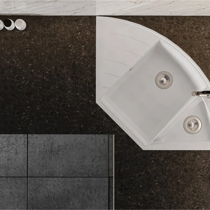 Форма цієї моделі Асиметрична;Кутова, а кількість чаш - 2. Тип установки - Врізний.