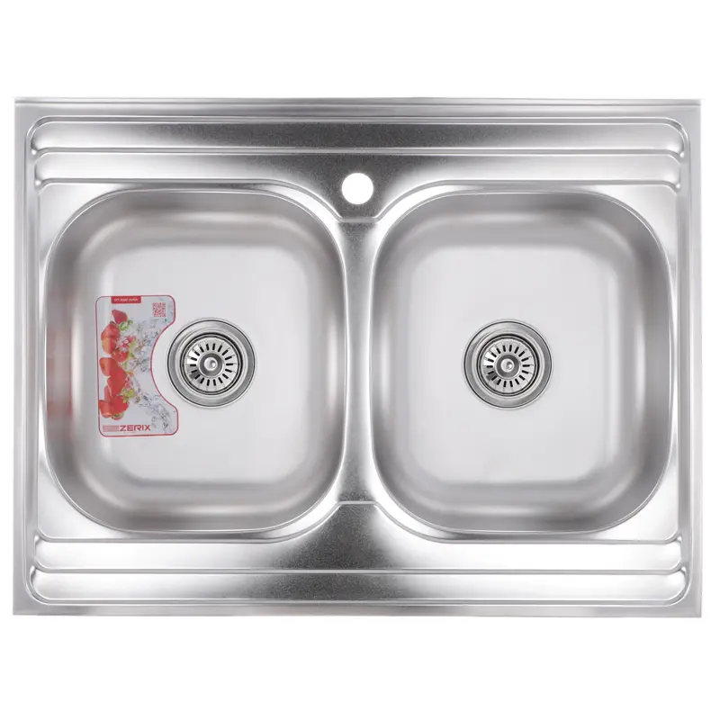 Кухонна мийка накладна ZERIX Z8060B-08-180E (satin) (ZX1620)