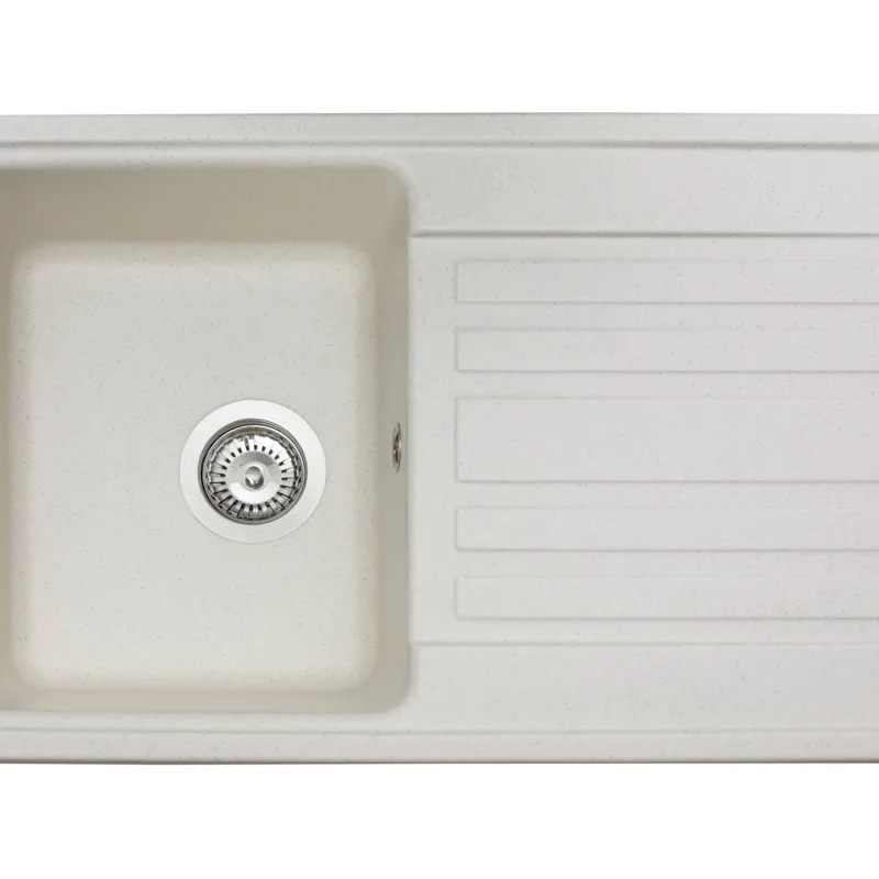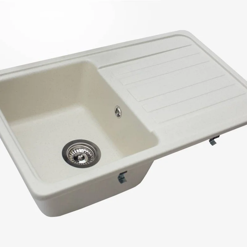 Кухонна мийка VERSAL jasmine має однорідну текстуру та колір. Вона не всочує запахи, відштовхує жир та забруднення, а також не змінює кольору в процесі експлуатації.