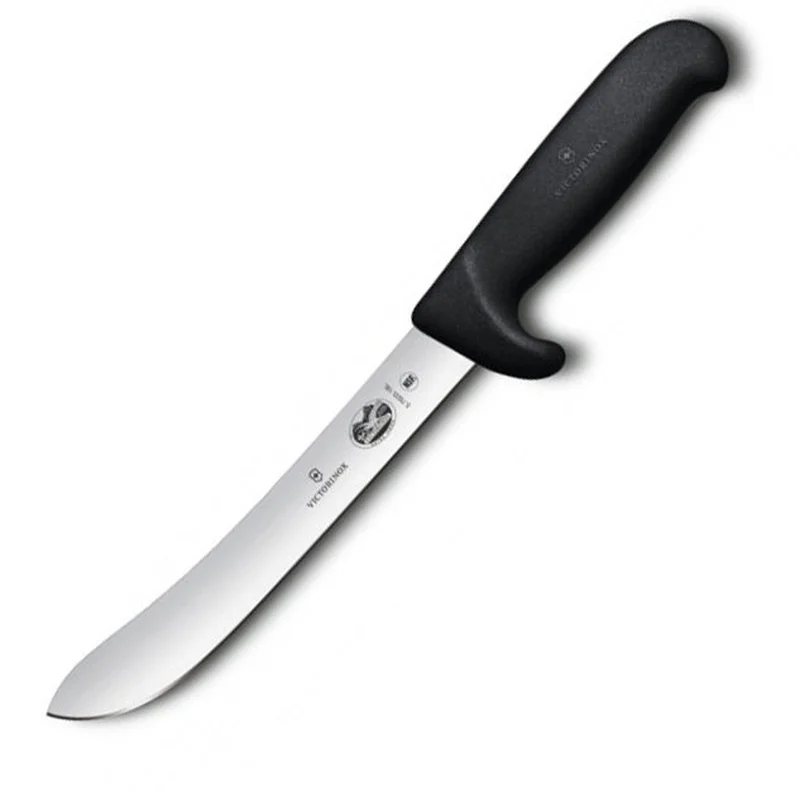 Професійний ніж м'ясника (обвалочний) Fibrox Butcher з лезом 18 см (гладке) і чорною ручкою SAFETY NOSE Victorinox 5.7603.18 L Швейцарія