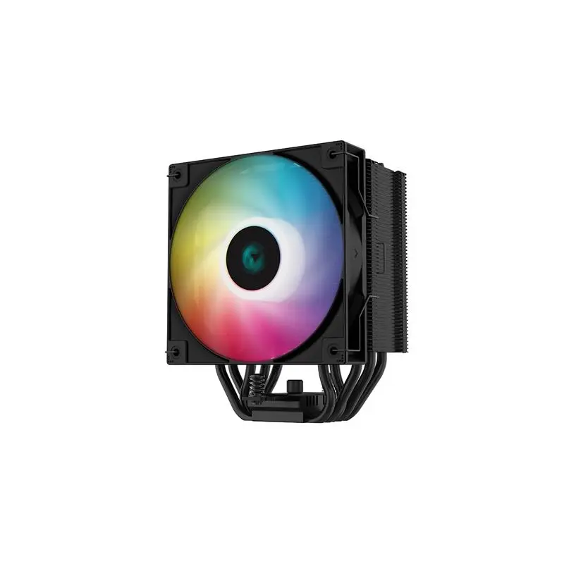 DeepCool AG500 BK ARGB — це повністю чорний компактний однобаштовий кулер для ЦП, орієнтований на високу продуктивність, що має п’ять мідних теплових трубок із прямим контактом, розміщених у щільній радіаторній вежі для оптимального розсіювання тепла та в поєднанні з точно налаштованим 120-мм ARGB ШІМ. вентилятор для потужного охолодження.