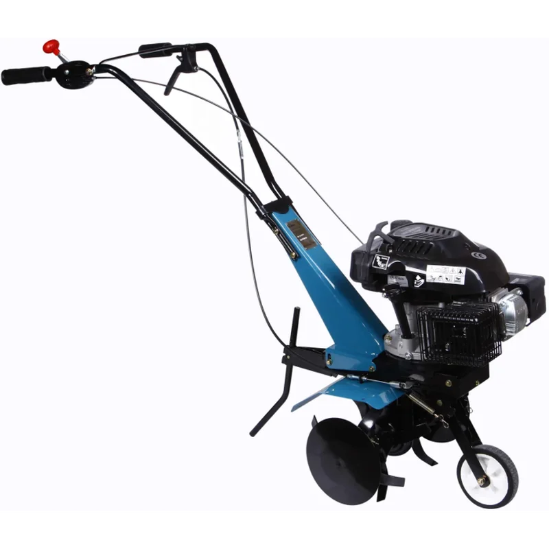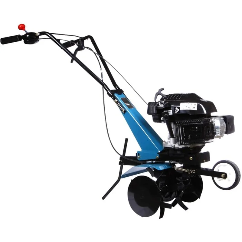 Комплектація: блок культиватора з ручками, транспортувальне колесо, комплект панелі оператора, захисні диски, фрези, набір інструментів і комплект з'єднань, інструкція з експлуатації, гарантійний талон