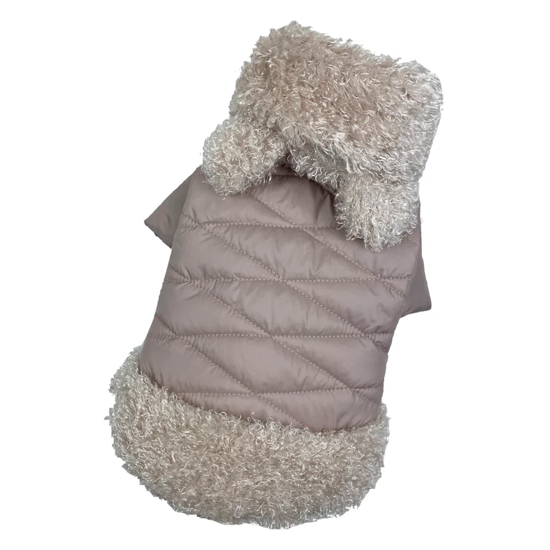 тканина водовідштовхувальна плащівка наповнювач синтепон підклад водовідштовхувальна плащівка капюшон і низ куртки з плюшевого хутра застібається кнопками на животі є отвір для повідця на шиї модель Для Дівчаток, ЖИВОТ ЗАКРИТИЙ