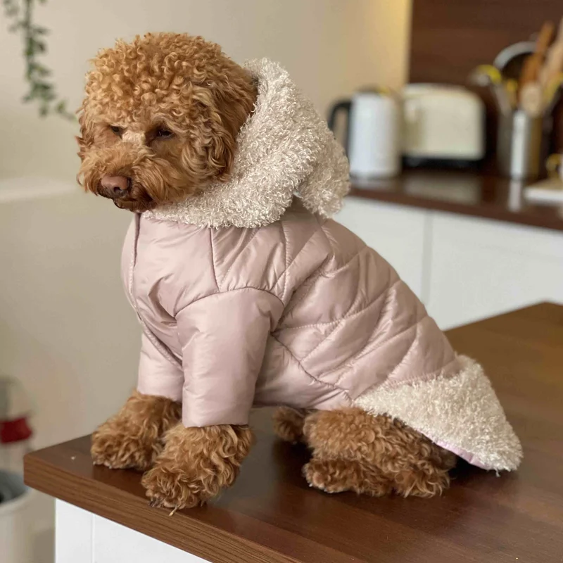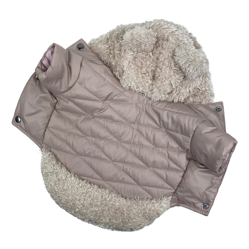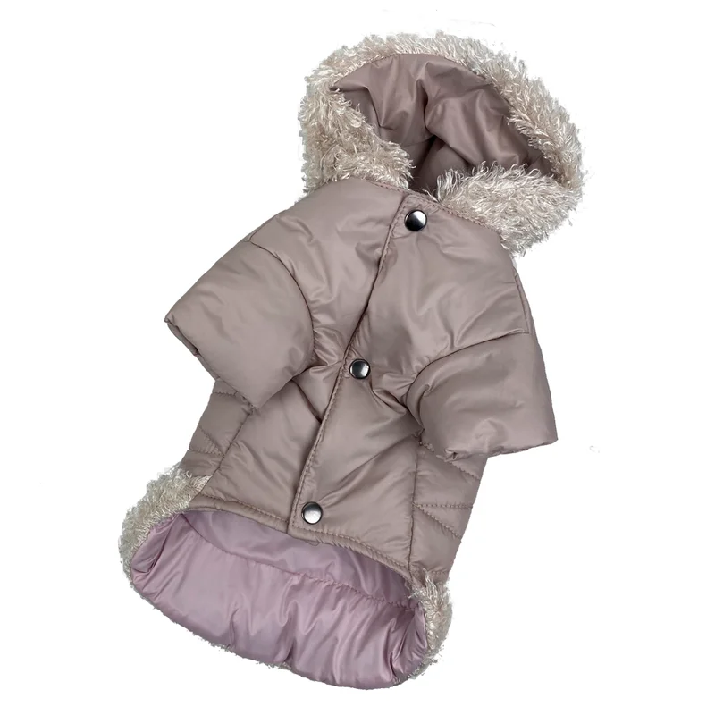 тканина водовідштовхувальна плащівка наповнювач синтепон підклад водовідштовхувальна плащівка капюшон і низ куртки з плюшевого хутра застібається кнопками на животі є отвір для повідця на шиї модель Для Дівчаток, ЖИВОТ ЗАКРИТИЙ