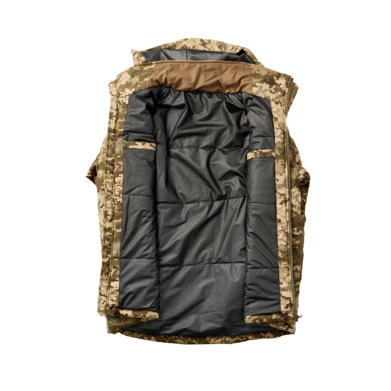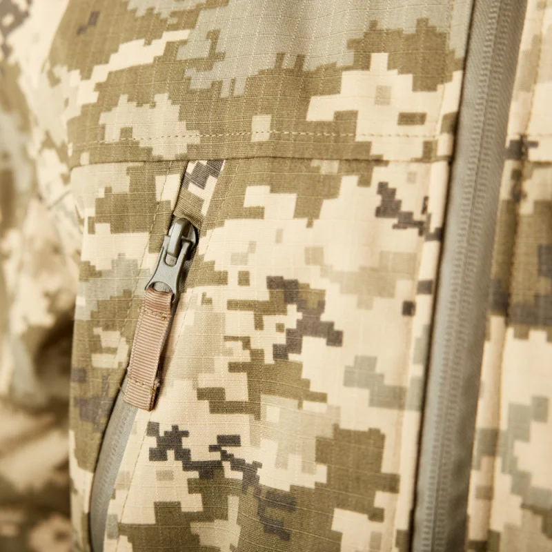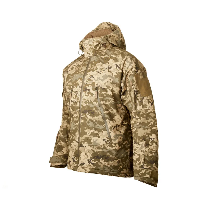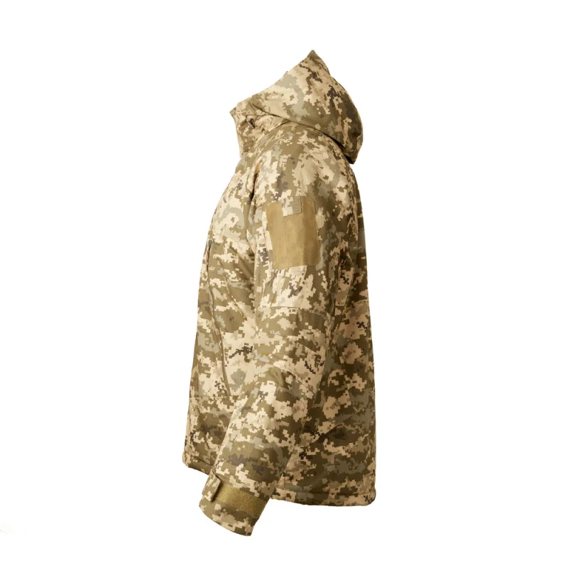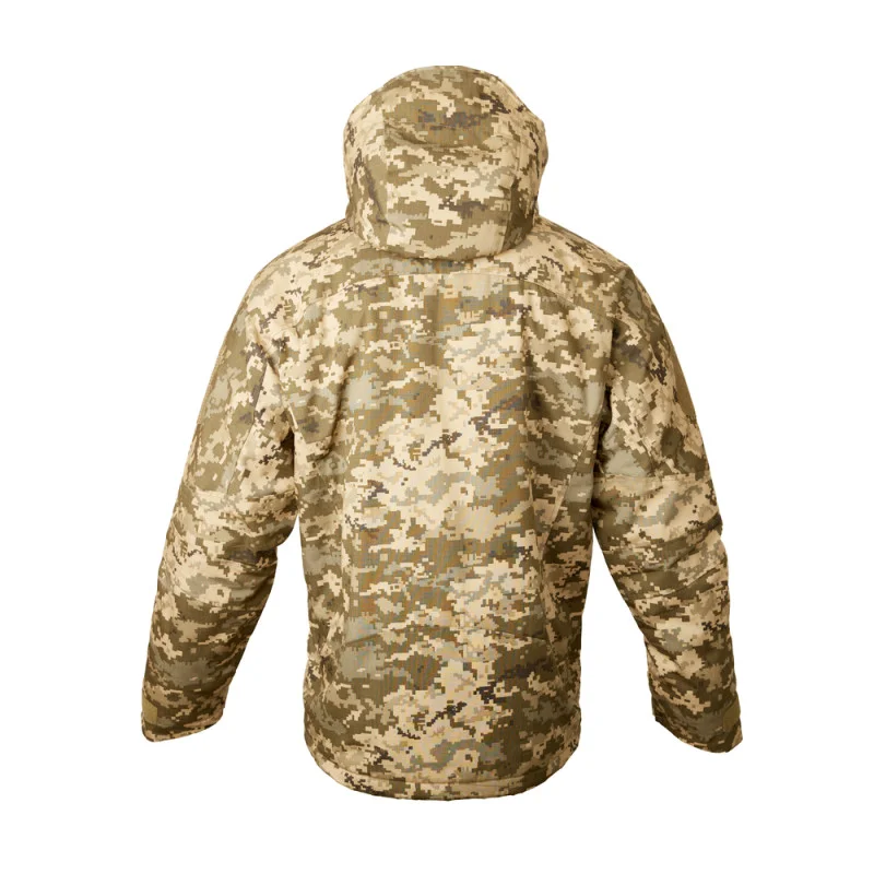 Піксельний дизайн: Унікальний піксельний візерунок в стилі ЗСУ надає куртці оригінальність і стійкий військовий характер.