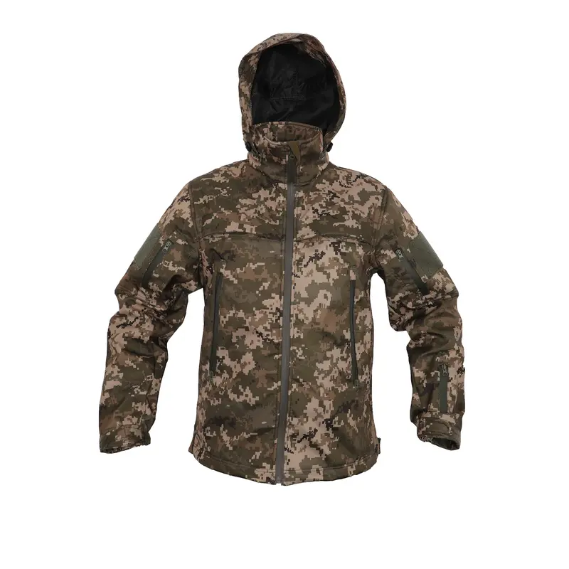 Тактическая куртка softshell Pancer пиксельной расцветки Тактическая куртка софтшелл Pancer Protection пиксельной расцветки по своему крою соответствует требованиям к одежде для военнослужащих. Куртка пошита из ткани softshell, технологичного материала, который позволяет сделать одежду более легкой и менее объемной благодаря соединению в едином полотне верхнего слоя и подкладки. Внутренняя часть представлена мягким флисом, который удерживает тепло и пропускает воздух. Снаружи непромокаемая ткань, создающая непреодолимое препятствие для ветра. Теплоизоляционные свойства обеспечиваются способностью флиса не впитывать влагу, а выводить не внешний слой, где происходит быстрое испарение. Ткань прочная на разрыв, не протирается, не деформируется во время стирки и быстро сохнет. Крой тактическая куртка soft shell Pancer Protection разработан для военных: Прямой силуэт не стесняет движений. Высокий воротник и капюшон защищают от ветра и дождя, капюшон отстегивается. Боковые карманы и небольшие карманы на рукавах застегиваются на молнии. В нагрудной части расположены карманы с пластиковой вставкой для документов, они могут располагаться как внутри куртки, так и снаружи. Манжеты на рукавах регулируются липучками. На плечах нашиты велкро-панели для шевронов. В районе подмышек вшиты молнии для дополнительного проветривания. Купить тактическую куртку софтшелл Pancer Protection можно на сайте компании, воспользовавшись корзиной, кнопкой быстрого заказа или бесплатными телефонами для связи. Оплатить покупку можно наличными, картой, безналичным расчетом. Отправка покупок осуществляется ежедневно национальными транспортными компаниями, в Киеве работает курьерская доставка.