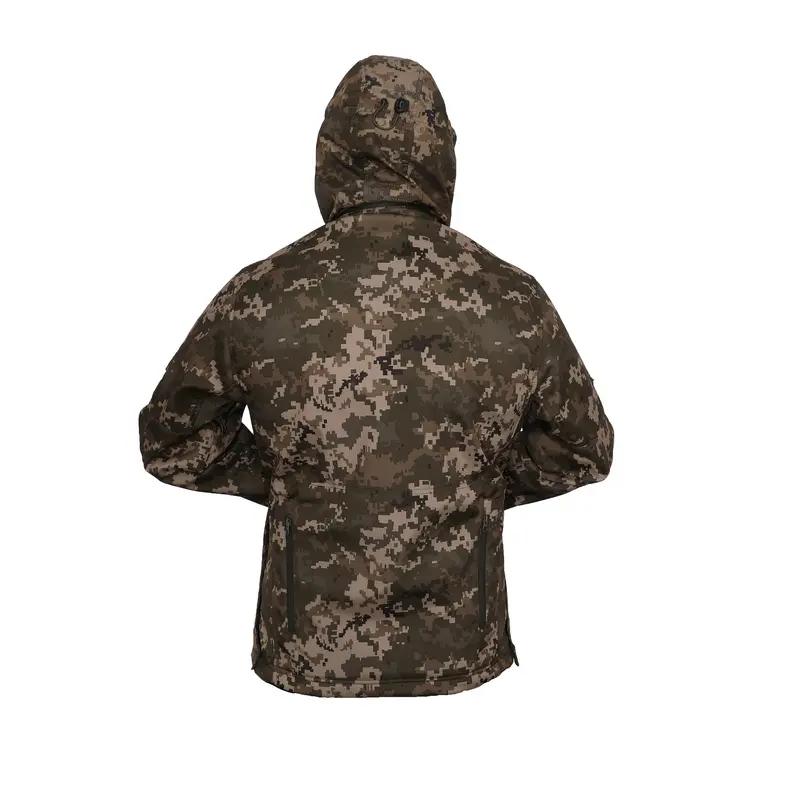 Тактическая куртка softshell Pancer пиксельной расцветки Тактическая куртка софтшелл Pancer Protection пиксельной расцветки по своему крою соответствует требованиям к одежде для военнослужащих. Куртка пошита из ткани softshell, технологичного материала, который позволяет сделать одежду более легкой и менее объемной благодаря соединению в едином полотне верхнего слоя и подкладки. Внутренняя часть представлена мягким флисом, который удерживает тепло и пропускает воздух. Снаружи непромокаемая ткань, создающая непреодолимое препятствие для ветра. Теплоизоляционные свойства обеспечиваются способностью флиса не впитывать влагу, а выводить не внешний слой, где происходит быстрое испарение. Ткань прочная на разрыв, не протирается, не деформируется во время стирки и быстро сохнет. Крой тактическая куртка soft shell Pancer Protection разработан для военных: Прямой силуэт не стесняет движений. Высокий воротник и капюшон защищают от ветра и дождя, капюшон отстегивается. Боковые карманы и небольшие карманы на рукавах застегиваются на молнии. В нагрудной части расположены карманы с пластиковой вставкой для документов, они могут располагаться как внутри куртки, так и снаружи. Манжеты на рукавах регулируются липучками. На плечах нашиты велкро-панели для шевронов. В районе подмышек вшиты молнии для дополнительного проветривания. Купить тактическую куртку софтшелл Pancer Protection можно на сайте компании, воспользовавшись корзиной, кнопкой быстрого заказа или бесплатными телефонами для связи. Оплатить покупку можно наличными, картой, безналичным расчетом. Отправка покупок осуществляется ежедневно национальными транспортными компаниями, в Киеве работает курьерская доставка.