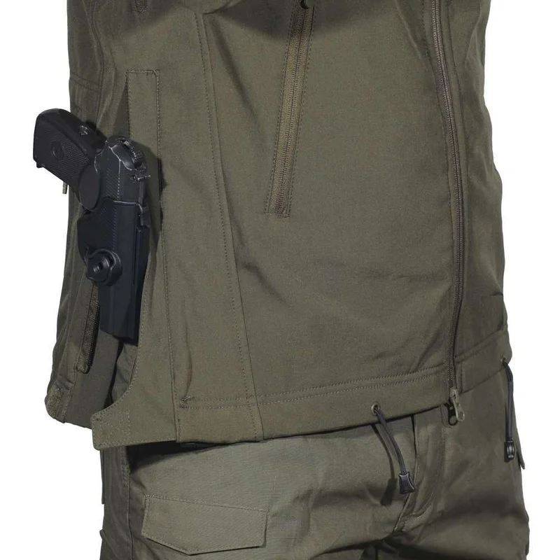 Куртка тактическая софтшелл олива Soft Shell успешно занял лидирующие позиции в материалах, из которых изготавливают верхнюю одежду. Он позволяет не переживать о холоде, ветре и осадках, а также не одевать много одежды под куртку. Скажи нет многослойности! И для этого достаточно лишь купить куртку софтшелл. Данная вещь разработана и пошита военторгом «PANCER PROTECTION». Нет ничего проще, чем купить тактическую куртку недорого – нужно это сделать у нас! Вещи, адаптированные по цене для украинского потребителя, при этом, обладающие европейским качеством, просто не могут остаться незамеченными! Почему еще стоит купить эту куртку Soft Shell: вещь имеет маленький вес и объем, что делает ее выгодной в походных условиях; черный цвет придется по вкусу всем; капюшон можно отстегнуть; использована пластиковая молния с мягким ходом; на куртке расположено 7 карманов, один из которых защищен пластиковым чехлом; имеется стяжка низа; по бокам расположены вырезы, застегивающиеся липучками, для мгновенного доступа к оружию (актуально для военных, охранников, полиции). Для того, чтобы купить куртку тактическую в Украине, вам не нужно тратить много времени на ее поиск – достаточно лишь сделать заказ на нашем сайте, а мы пришлем вам ее в любой город! При этом, если вы находитесь в Киеве, забрать заказ можно прямо в нашем шоуруме, где вы также сможете ознакомиться с прочим нашим ассортиментом. Тактическая куртка СофтШелл поможет наладить терморегуляцию и микропроветривание организма. Верхний слой состоит из высокопрочных синтетических волокон, сплетенных с высокой плотностью для непроницаемости для ветра. Мягкий флис, из которого состоит подкладка, хорошо удерживает тепло. Особенности куртки Soft Shell оливковой Тактическая куртка незаменима на длительных дежурствах, в походах или на службе. Она имеет несколько карманов для равномерного распределения веса вещей, а также вертикальные разрезы по бокам для легкого доступа к спрятанной кобуре. Воротник дополнительно утеплен и имеет отделение для хранения капюшона в сложенном виде. Материал может помочь в разных ситуациях: 1. Функциональная конструкция. 2. Влагоотталкивающие свойства. 3. Помогает сохранять тепло. 4. Износостойкость. Интернет-магазин «PANCER» поможет купить тактическую куртку в Украине без переплат. Оформить покупку можно без регистрации и через личный кабинет. Постоянные покупатели могут получить дополнительные скидки, персональные предложения и накапливать бонусные баллы.