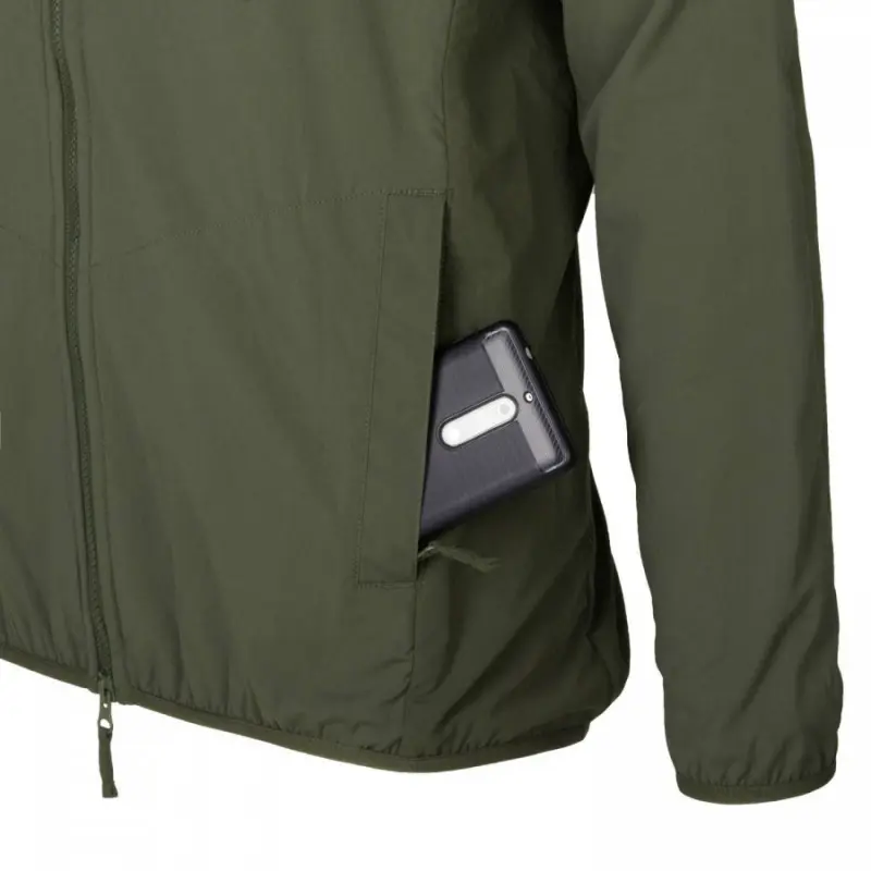 Helikon-Тех URBAN HYBRID SOFTSHELL Jacket® - демісезонний міська куртка з капюшоном, в якій, завдяки унікальним властивостям StormStretch®, Вам завжди буде сухо і тепло, незважаючи на погодні умови. Поєднання трьох видів сировини в матеріалі StormStretch дозволили створити легку, універсальну куртку Urban Hybrid Softshell, яка буде захищати Вас від вітру, тоді як покриття DWR (Durable Water Repelent) відштовхувати краплі дощу, а внутрішній ворсистий шар, при підвищених навантаженнях, відводити вологу назовні і рівномірно розподіляти тепло всередині. О четвертій кишені можна покласти найнеобхідніші щоденні речі. Urban Hybrid Softshell легко піддається стисненню і компактно складається в сумку або рюкзак.