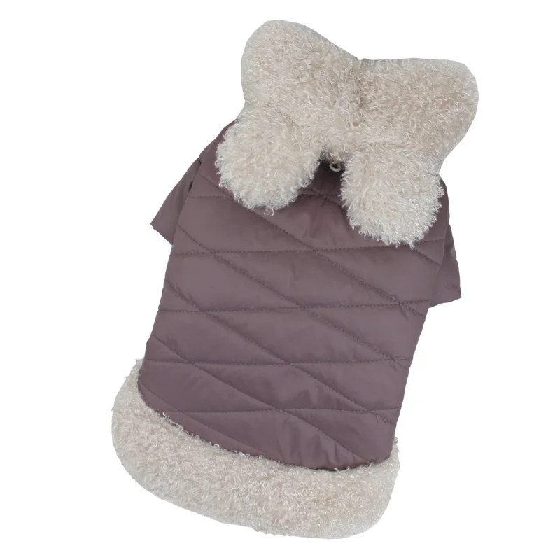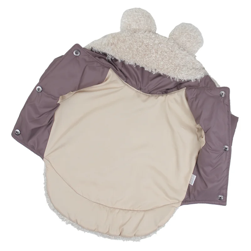 ![CDATA[Description: model for girls, belly closed water-repellent raincoat fabric sitnepon filler lining water-repellent raincoat fabric plush fur hood and bottom there is a hole for a leash on the neck fastens with buttons on the belly model for girls, belly closed