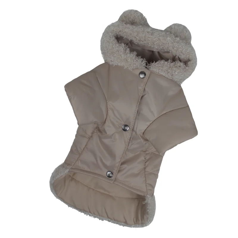 тканина водовідштовхувальна плащівка наповнювач синтепон підклад водовідштовхувальна плащівка капюшон і низ куртки з плюшевого хутра застібається кнопками на животі є отвір для повідця на шиї модель Для Дівчаток, ЖИВОТ ЗАКРИТИЙ