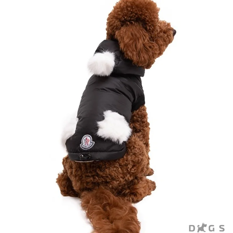 Куртка з хутряним бубоном чорна K-17
