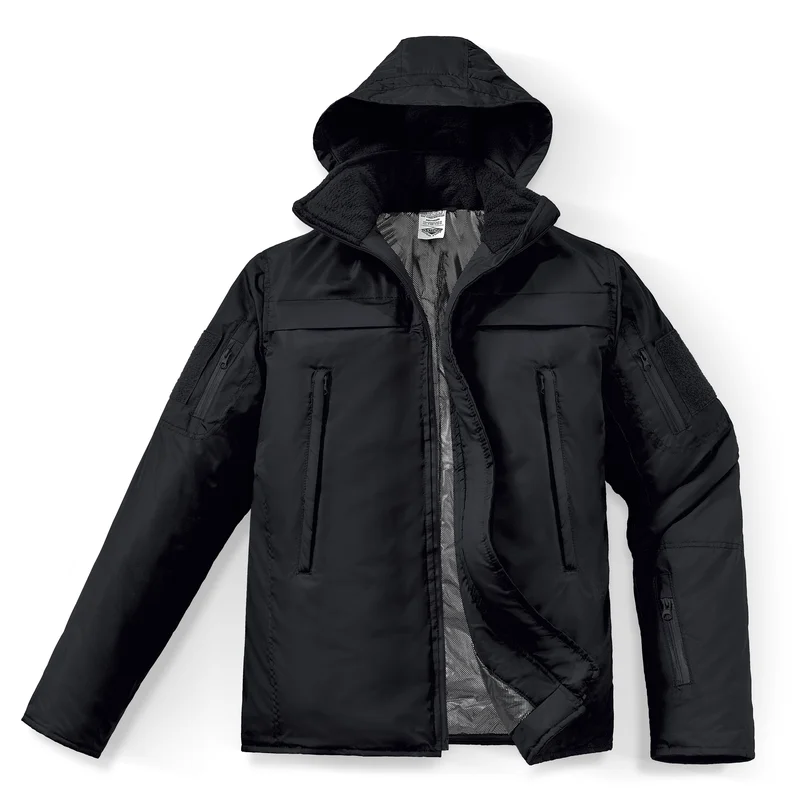 Зимняя тактическая куртка Pancer в чёрном цвете идеально подходит для сотрудников полиции и охраны. Куртка изготовлена из мембранной ткани, обеспечивающей защиту от ветра и влаги, что делает её надёжным выбором для профессиональных задач в холодных условиях. Преимущества: Регулируемый капюшон. Манжеты для сохранения тепла. Подкладка Omni Heat для эффективного утепления. Непромокаемые молнии и скрытые карманы для удобства. Чёрный цвет добавляет универсальности для служебного использования.