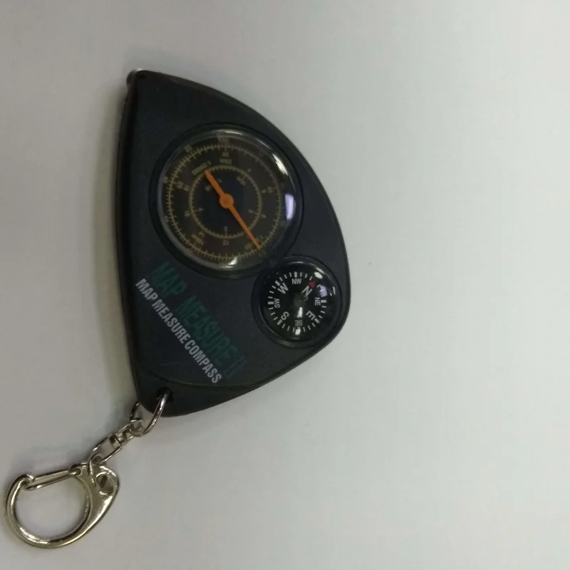 Длина: 77 мм. Ширина:62 мм. Вес: 22 г. Масштаб: 1 см:5000 см, 1 см:20000 см, 1 см:50000 см. Верхняя шакала указывает на пройденное роликом расстояние, для возможности вычисления длины извилистых линий при использовании других масштабов. Курвиметр - прибор для измерения измерения длины извилистых линий на картах, планах и чертежах. Курвиметр состоит из зубчатого ролика и счетчика пройденного количества зубцов. Для измерения длины кривой по ней прокатывают роликом курвиметра. Длина кривой вычисляется по формуле: длина кривой=длина окружности ролика*пройденное количество зубцов/количество зубцов на ролике. Знание этой формулы не требуется для измерения расстояний, при использовании механического курвиметра, так как циферблат снабжен шкалой с нанесенными общепринятыми единицами измерения длины.