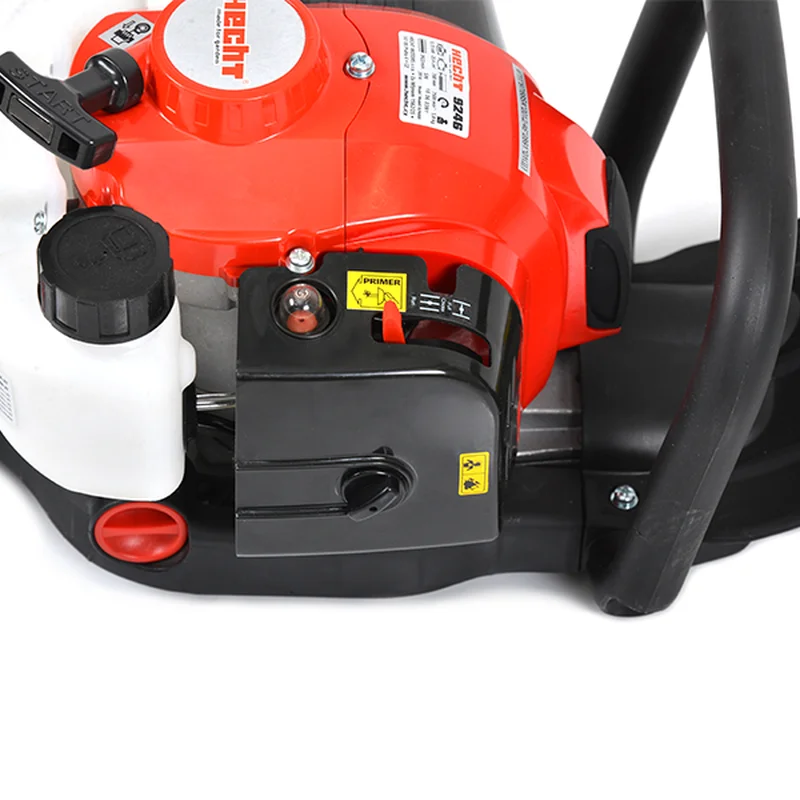 Вібрації, що передаються на рукоятку, зменшуються завдяки антивібраційній системі зі сталевими пружинами і це полегшує тривалу роботу. Кущоріз Hecht 9245 - легкий прилад з невеликими габаритами. Завдяки цьому експлуатувати його в важкодоступних місцях не проблема.