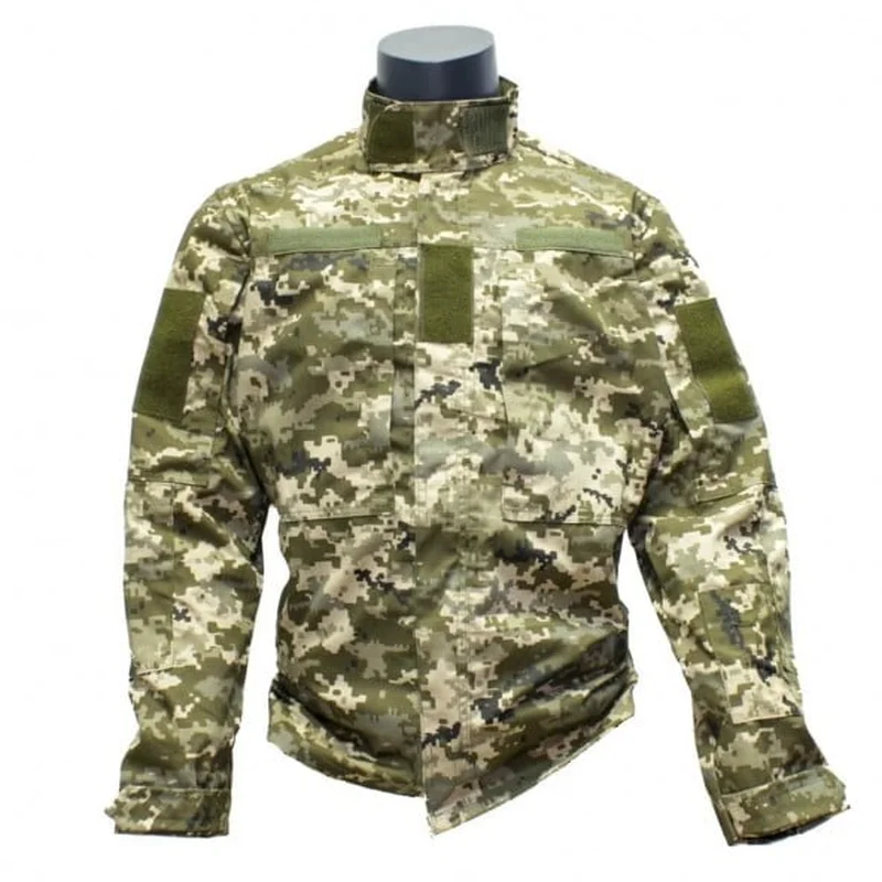 Китель Военная форма украинской армии ВСУ Новая форма украинской армии. Камуфляж нового "цифрового" поколения,разбит на прямоугольники серого, зеленого, темно зеленого и желтого цвета. Его отличие от прошлых не "цифровых" расцветок в том что он не толькоотлично маскирует в степной, лесной и городской местности, но и благодаря математически рассчитанному нанесению пятен(пикселей)разбиваеточертания солдата и не дает сфокусироваться на нем взгляду противника. За основу фасона камуфляжавзят ACU, современная модель предназначенная для ведения боевых действий в различных условиях. От устаревшей армейской модели отличается большей продуманностью деталей,заботой об удобстве бойца. Брюки свободного покроя, есть двойной слой ткани в области ягодиц, переходящий в паховую область, в районе колен также специальный карман для амортизирующих вставок. Два боковых кармана, два задних(закрываються на пуговицы), а также два удобныхдля сброса магазина набедренных кармана, имеют утяжку на резинке, дваголеностопных кармана идеально приспособленных для ношения личной аптечки, доп. боеприпасов и т.д. Гульфик на пуговицах. Шлевки широкие, под офицерский ремень, из специальной(укрепленной) ткани. Утяжки в районе пояса и низа брюк. P.S. Данная модель разрабатывалась специально для ведения боевых действий.