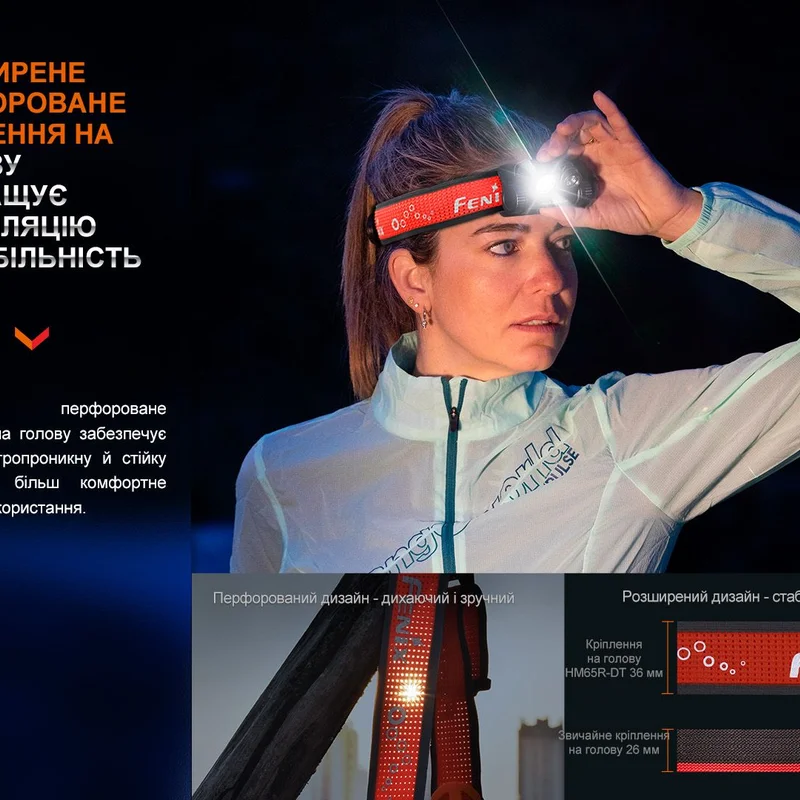 Ліхтар налобний для бігу Fenix HM65R-DT, бузковий