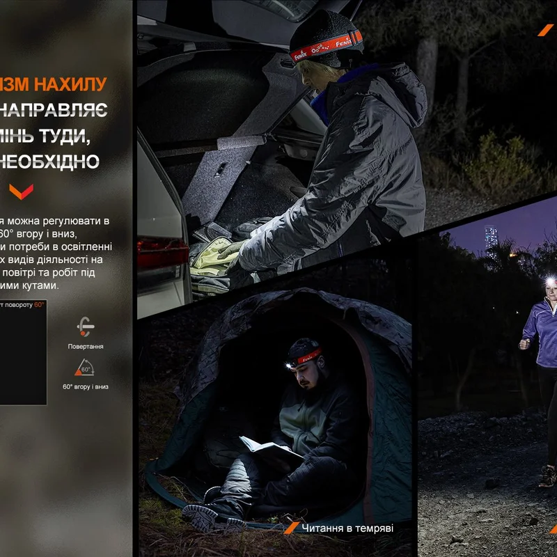 Експлуатаційний термін обох діодів складає понад 50 тисяч годин. Ще один приємний бонус ліхтаря — можливість нахилу корпусу на 60°. Це дозволяє користувачу виставити комфортний кут освітлення, адаптувавши світло під власні потреби.