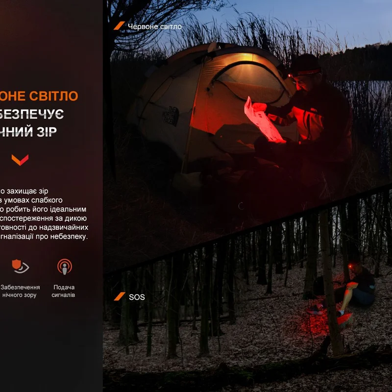 - Миготливе світло (SOS): 5 люмен – 10 кандел – 6 метрів – 200 годин.
