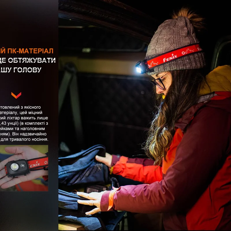 Вага Fenix HL16 разом із оголов’ям та повним комплектом батарей становить всього 97.2 грамми.