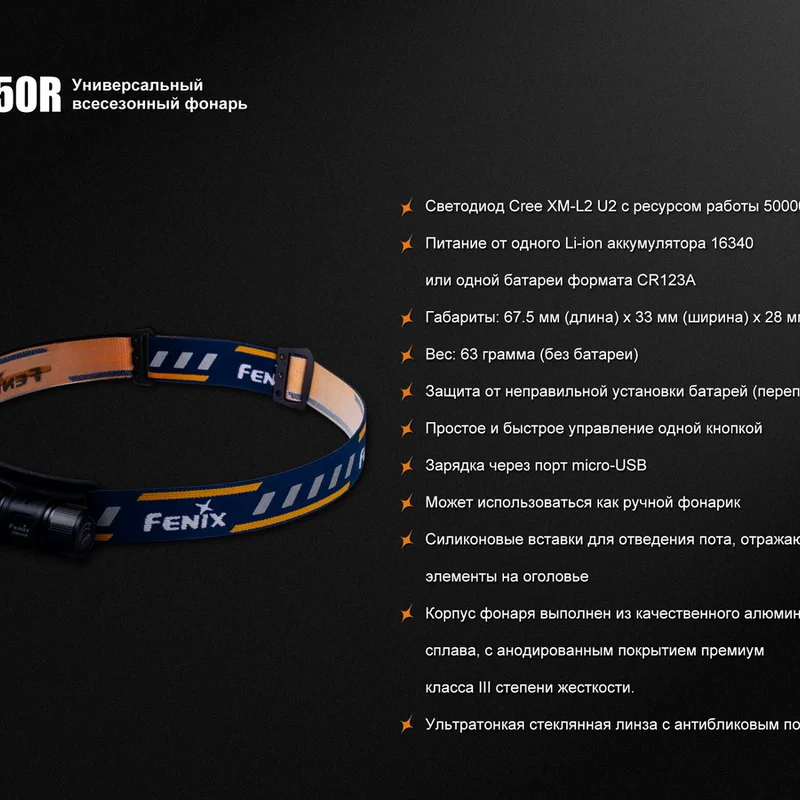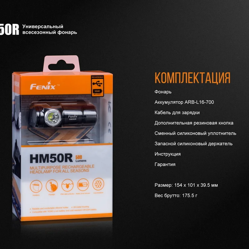 Гарантія: П'ятирічну гарантію, надану виробниками, отримує кожен з покупців ліхтарів Fenix HM50R.