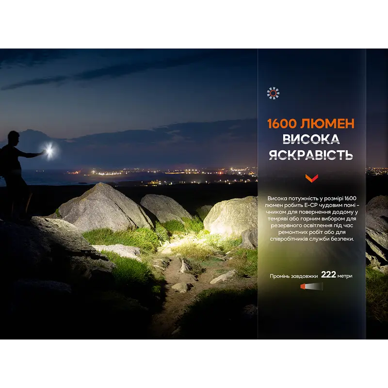 Fenix E-CP є ліхтарем для використання щодня, стане в нагоді мандрівникам, буде корисним у різних видах туризму та активного відпочинку.