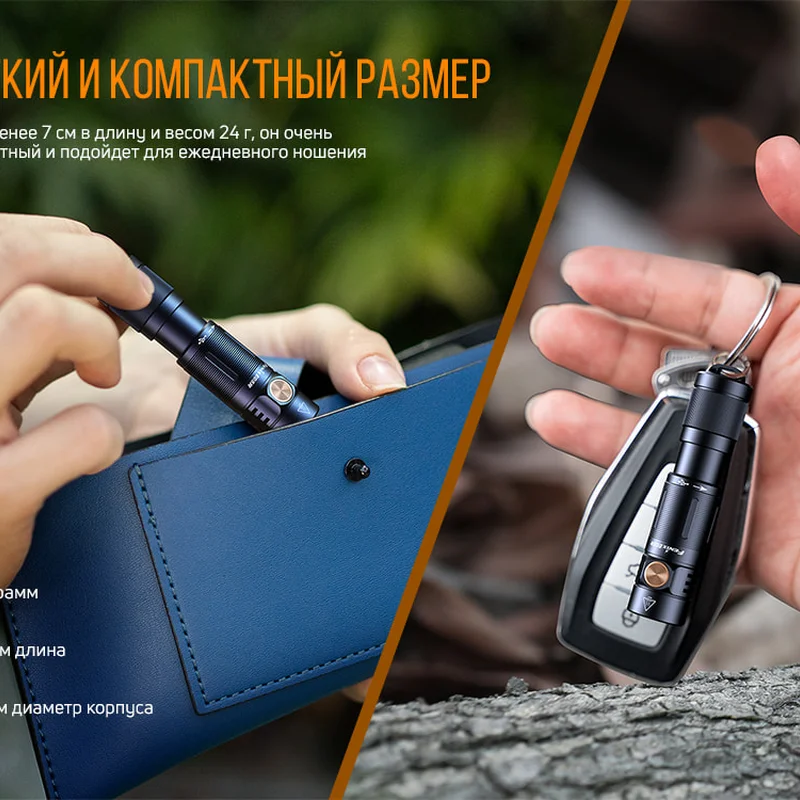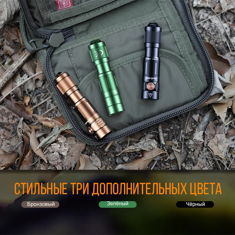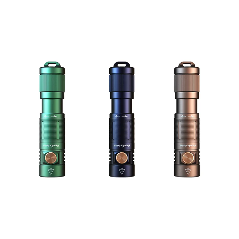 Модель ліхтаря Fenix E05R є невеликим і досить легким міні-брелоком. Одна зі специфічних рис цього привабливого ліхтарика-те, що корпус представлений в трьох різних відтінках. А саме-в чорному, зеленому і бронзовому кольорах. Ліхтар не тільки виконує декоративну функцію, але ще і дає своєму власникові найбільший світловий потік в 400 люменів. При цьому промінь світла поширюється на відстань в 64 метри. Для світіння цього ліхтаря використовується світлодіод Cree XP-G2 S3, біле освітлення. Живлення здійснюється від вбудованого акумулятора Li-polymer ємністю 320 маг.