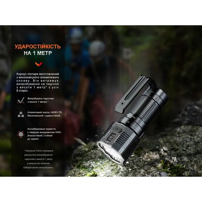 Корпус виготовлений з алюмінію А6061-Т6, тому ліхтар відрізняється не лише яскравістю, а й стійкістю до зношування. Метал не боїться прямого механічного впливу та падінь з метрової висоти, а анодований шар підвищує його опірність корозії.