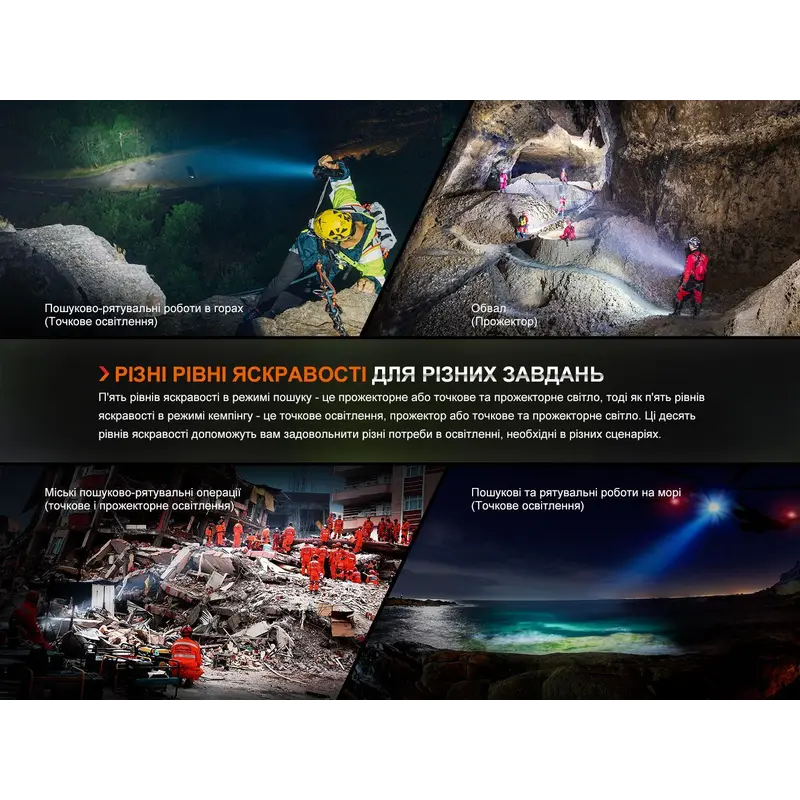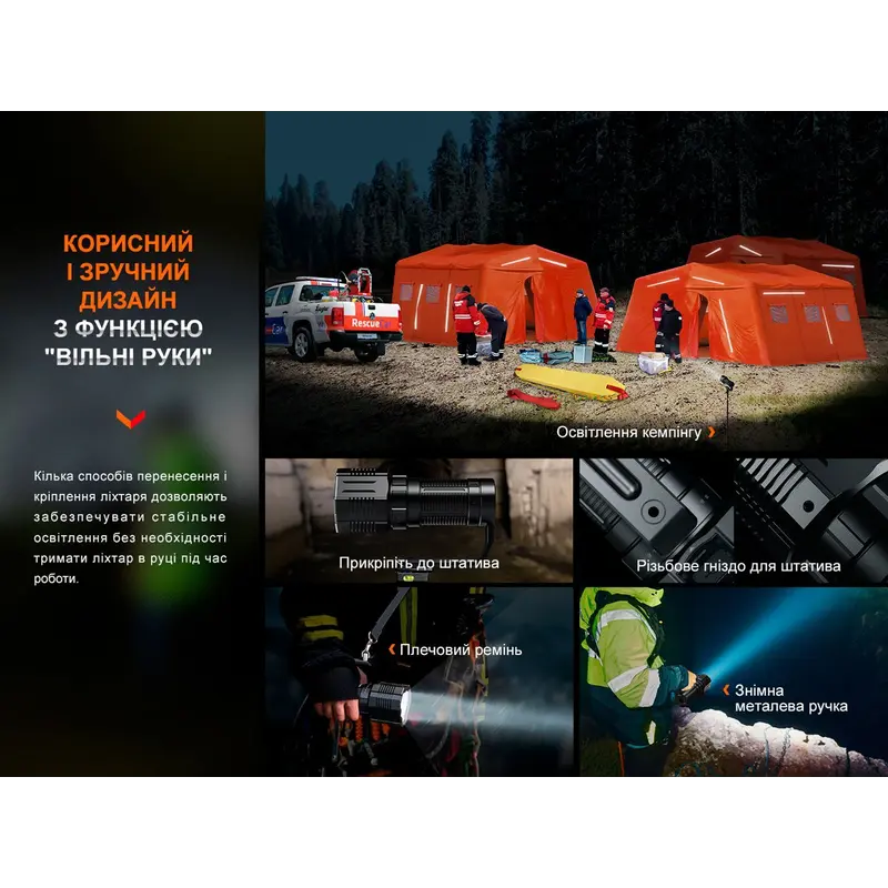 - ліхтар із функцією Power Bank для пошуково-рятувальних операцій, будівельних робіт, екстремальних видів спорту;