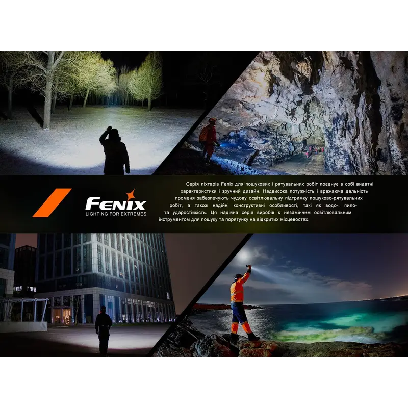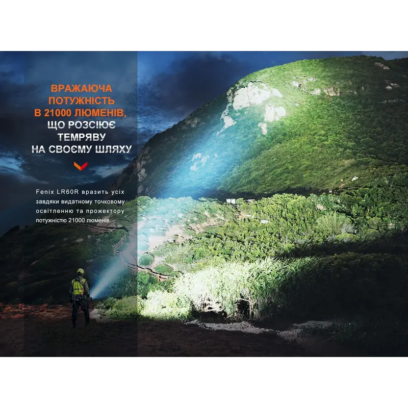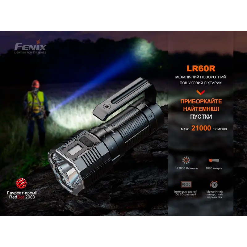 Потужність прожектора та ергономіка ручного ліхтаря об'єднані в моделі Fenix LR60R, яка розроблена для використання в умовах, де від яскравого джерела освітлення залежить комфорт користувача, а іноді й життя інших людей.