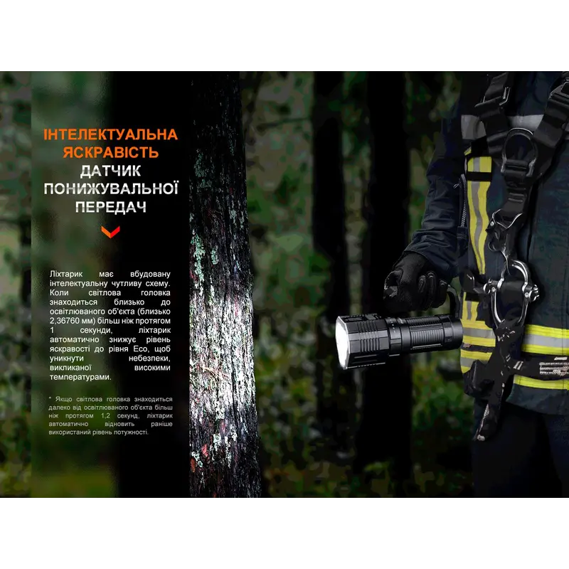 Важливо! Під час роботи на підвищених яскравостях модель накопичує багато тепла. Щоб уникнути виникнення несправностей внутрішньої електроніки через високі температури, у ліхтарі є інтелектуальний захист від перегріву, який спрацьовує щоразу, коли температура досягає 60°C, і знижує яскравість. Знов використовувати найяскравіші режими можна після того, як електроніка охолоне.
