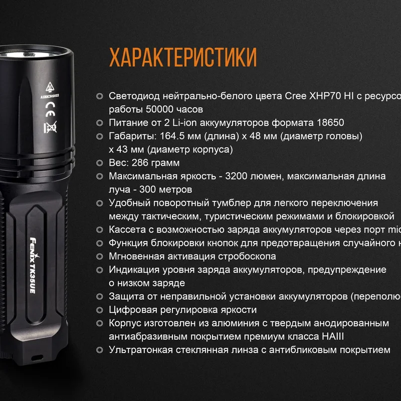 Гарантія: Ліхтарі Fenix TK35UE 2018 продаються з гарантією від виробників, розрахованої на 5 років їх експлуатації.